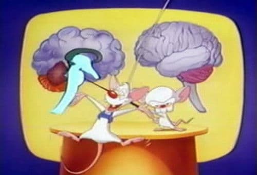 Pinky and Brain are genetically enhanced laboratory mice who reside in a cage in the Acme Labs research facility. Brain is self-centered and scheming; Pinky is good-natured but feebleminded. In each episode, Brain devises a new plan to take over the world, which ultimately ends in failure, usually due to Pinky's idiocy, the impossibility of Brain's plan, Brain's own arrogance, or just circumstances beyond their control.