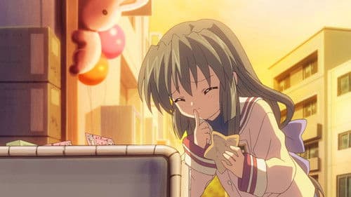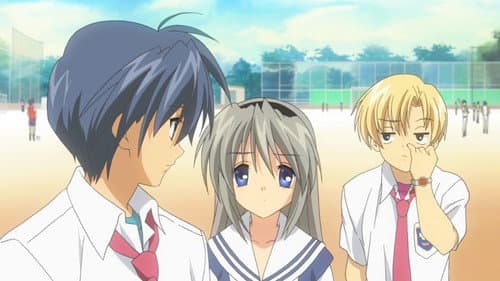 Tomoya Okazaki is a third year high school student resentful of his life. His mother passed away from a car accident when he was younger, causing his father to resort to alcohol and cigarettes. This results in fights between the two until Tomoya's shoulder is injured in a fight. Since then, Tomoya has had distant relationships with his father, causing him to become a delinquent over time. While on a walk to school, he meets a strange girl named Nagisa Furukawa who is a year older, but is repeating due to illness. Due to this, she is often alone as most of her friends have moved on. The two begin hanging out and slowly, as time goes by, Tomoya finds his life shifting in a new direction.