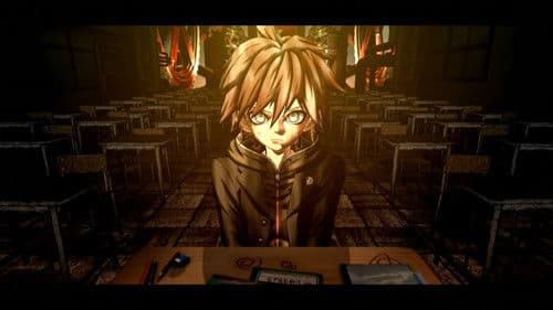 After being granted access to all previously locked rooms, Makoto and Kyoko investigate the dorm's second floor and find a hidden room in the headmaster's lodge. There, they discover the remains of Kyoko's father, who had died long before the killing game started, along with an SD Card containing video interviews of all the students agreeing to spend their lives in Hope's Peak Academy, although Monokuma pulls the plug before the video gets too far. Whilst Kyoko deals with the revelation that her father cared more about her than she thought, Makoto uses the headmaster's e-handbook to open some lockers, finding some textbooks allegedly belonging to Yasuhiro and a notebook containing Kyoko's handwriting, hinting at there being two 'Despair' students. Afterwards, Makoto visits the science lab, being used as a morgue, noticing some curious wounds on Mukuro's body before Monokuma gives him a photo featuring all sixteen students except for himself. As the class trial soon begins, with Monokuma joining the fray, the other students reveal they had also received similar photos, only with them missing from their respective photos. Wondering where these photos came from, Makoto reveals the books he found, deducing they are each missing some of their memories, revealed to have been stolen by Monokuma. Makoto then accuses Monokuma of murdering Mukuro, deducing that Mukuro was murdered twice, pointing out the true cause of death were wounds eerily matching the ones Junko received. After Kyoko proves her innocence by revealing the shameful burns on her hands, Makoto deduces from Monokuma's obscured evidence the identity of the culprit, Monokuma's controller, and the academy's mastermind to be none other than the real Junko Enoshima, who soon appears and reveals herself to be the true Super High School Level Despair.