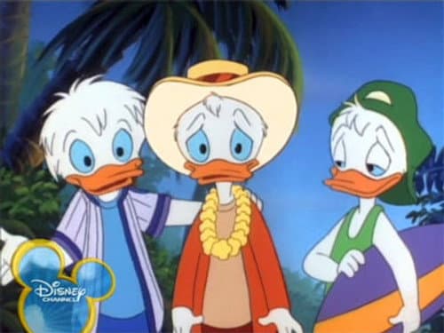 This cartoon follows on from the 1980’s cartoon “Ducktales”, continuing the adventures of Huey, Dewey and Louie. Now 12 year olds and living with their uncle Donald Duck, the three spend their time playing practical jokes on their hapless uncle and otherwise getting into trouble.