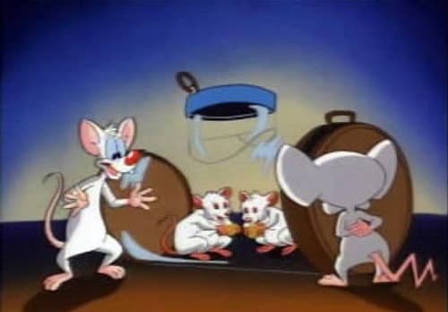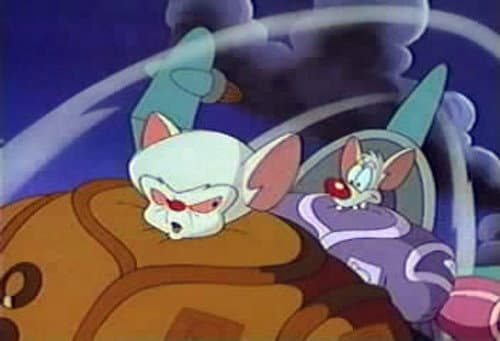 Pinky and Brain are genetically enhanced laboratory mice who reside in a cage in the Acme Labs research facility. Brain is self-centered and scheming; Pinky is good-natured but feebleminded. In each episode, Brain devises a new plan to take over the world, which ultimately ends in failure, usually due to Pinky's idiocy, the impossibility of Brain's plan, Brain's own arrogance, or just circumstances beyond their control.