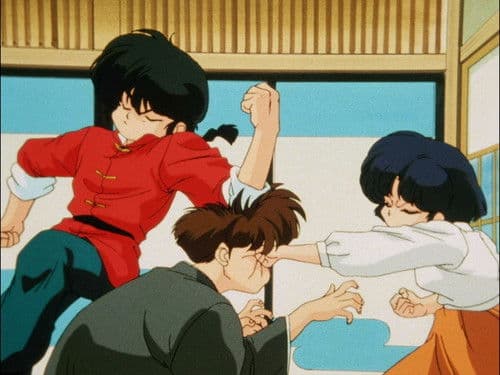 Ranma Saotome, a teenage martial artist, and his father Genma travel to the 'cursed training ground' of Jusenkyo in China. There, despite the warnings of the Chinese guard, they fall into the cursed springs. From now on, whenever Ranma is doused in cold water, he turns into a girl and a cute, well-built redhead at that. Hot water changes him back into a man again, but only until the next time. To make matters worse, his father engages him to Akane Tendo, a girl who hates boys.