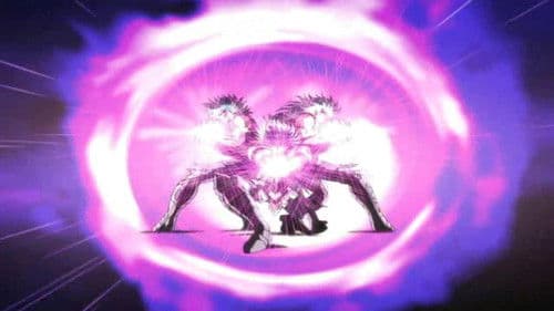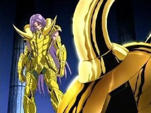 Seiya meets up with his friends and they head to the House of Leo. Meanwhile, Gigant and his group of Specters encounter Aiolia at the House of Leo, still searching for Saga and the others, since they were suspicious of them. Five Specters try to get through the House, but Aiolia quickly eliminates them with his Lightning Plasma. Another Specter, Worm Raimi, appears. Seiya and his friends encounter three dead Specters, without their Surplices. One was frozen to death, one was slashed in the back, and the last one had major burn marks. They continue towards the House of Leo. Raimi tells the other Specters to go to the next House and digs a hole underground. Aiolia senses familiar Cosmos within the Specters. Suddenly, he is bound by Raimi's tentacles, but frees himself and drags Raimi above ground. Aiolia attacks but the Specter goes underground and reemerges. However, Aiolia finishes him off with a Lightning Bolt. The four Bronze Saints arrive and tell Aiolia about the dead Specters. Gigant and the other Specters arrive at the House of Virgo and find it in shambles. Shaka appears before them and blocks their attacks with his barrier. He then pulls out a rosary with 108 beads, the same number as Hades' Specters. When a bead turns black, it means a Specter has died. So far, 11 Specters have died, but Gigant is confused, there should only be 8 dead. Shaka attacks the Specters, but three of them stop the attack and use Diamond Dust, Excalibur and Galaxian Explosion. Shaka is able to block the techniques, but just barely. Knowing who the three Specters are, Shaka removes the Surplices to reveal Saga, Camus and Shura. Aiolia tells Seiya and the other Saints that Shaka is willing to sacrifice himself.